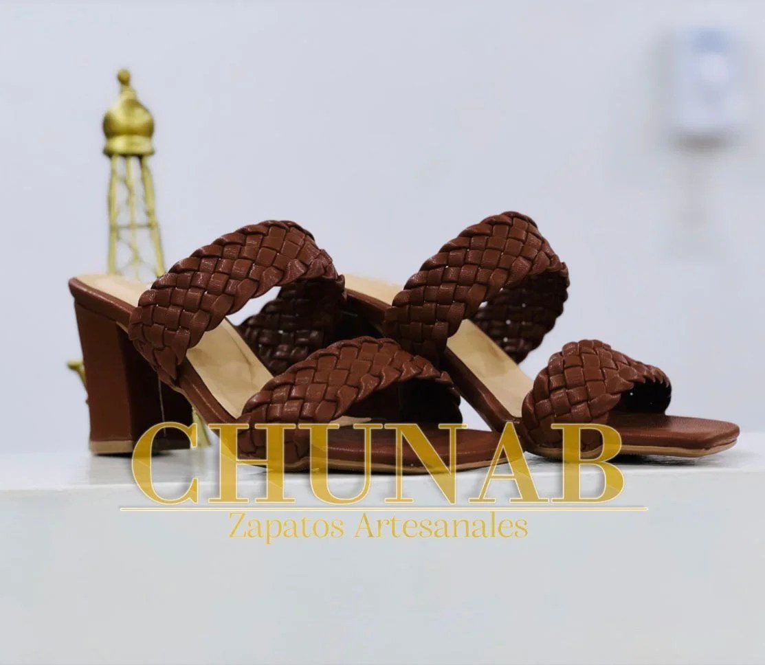 Zapatillas con modelo de dos tiras de tejidos tipo trenza, Tacón de 7cm de altura.